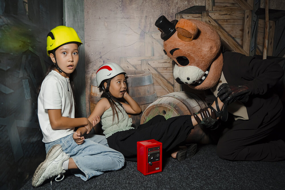 Представьте, что гости оказываются прямо во вселенной игры Прятки. Ночь у Фредди. Локация погружена во тьму, мерцают стробоскопы, раздаются зловещие звуки и играет авторская тематическая музыка. Каждый участник получает свою задачу: одни ищут спрятанные деньги, другие изучают подсказки на флешках, чтобы починить сломанных аниматроников. А тот, кто первым столкнётся с Фредди, должен надеть наручники — это абсолютно безопасный элемент игры, который добавляет мощную порцию адреналина.